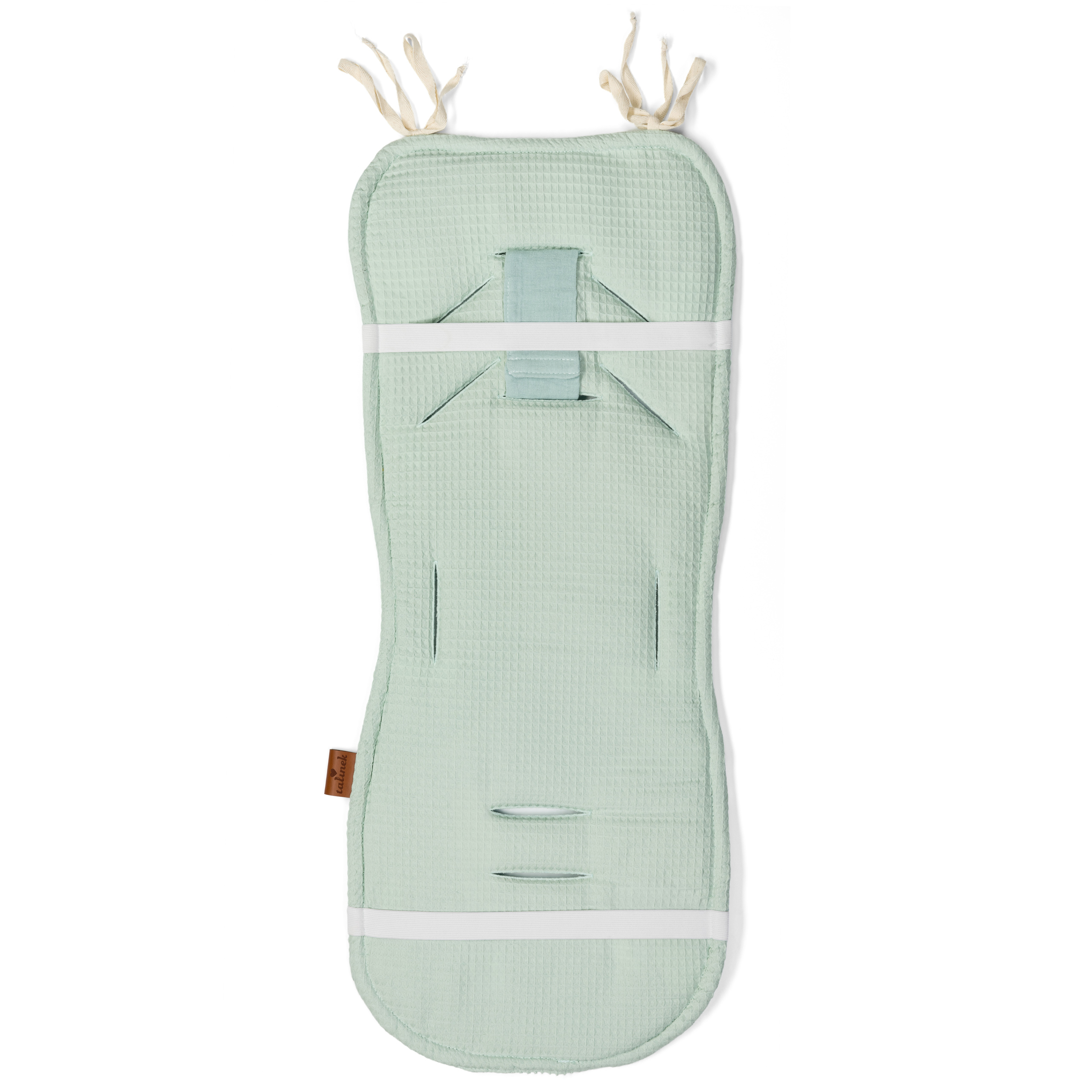 Oferujemy wkładkę do wózka wyprodukowaną z wafla oraz muślinu, które są naturalnymi tkaninami 100% bawełnianymi. Wewnątrz zastosowaliśmy antyalergiczną włókninę silikonową. Wkładka oddziela środowisko wózka od ciała dziecka. Dziury na pasy umożliwiają montaż wkładki z zachowaniem bezpieczeństwa dla dziecka.