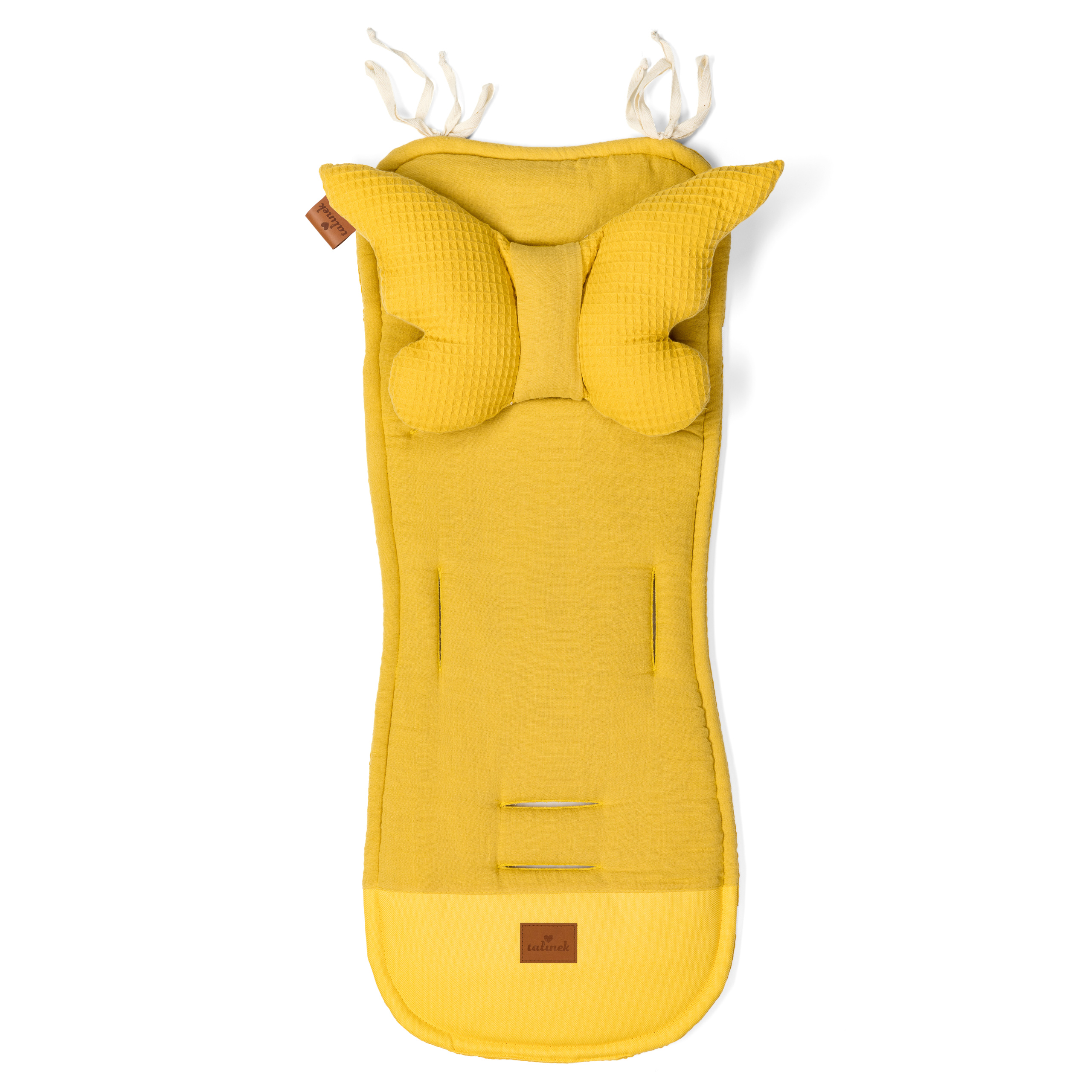 We wkładce zastosowaliśmy otwory na pasy zabezpieczające maleństwo w wózku. Przygotowaliśmy również dwa otwory z przepaską zapinaną na rzep na dedykowane do wkładki motylki, które dostępne są w innych ofertach.